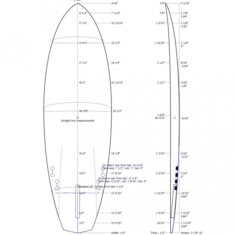 5'9 x 19 5/8" x 2 1/2" => 29,74L