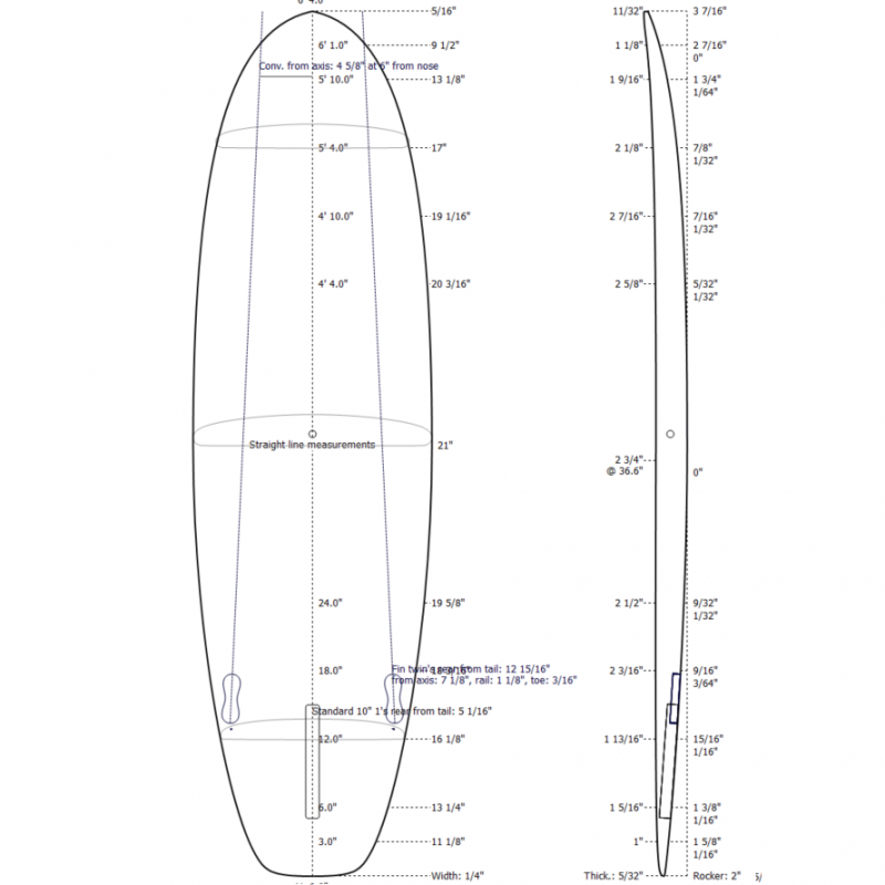 6'4 x 21" x 2 3/4" => 42,23L
