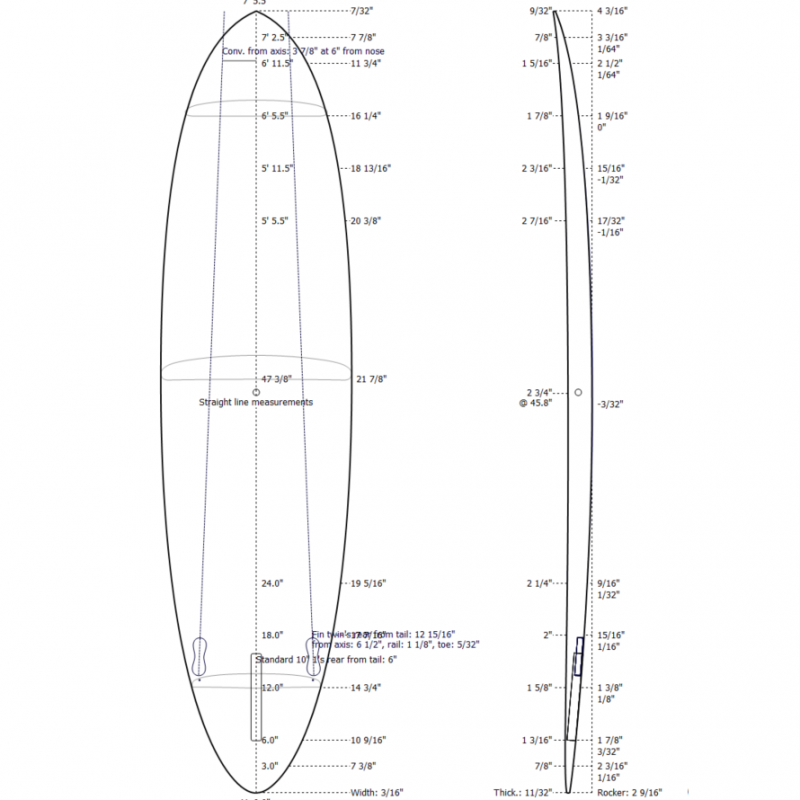 7'2 x 21 1/2" x 2 5/8" => 44,56L