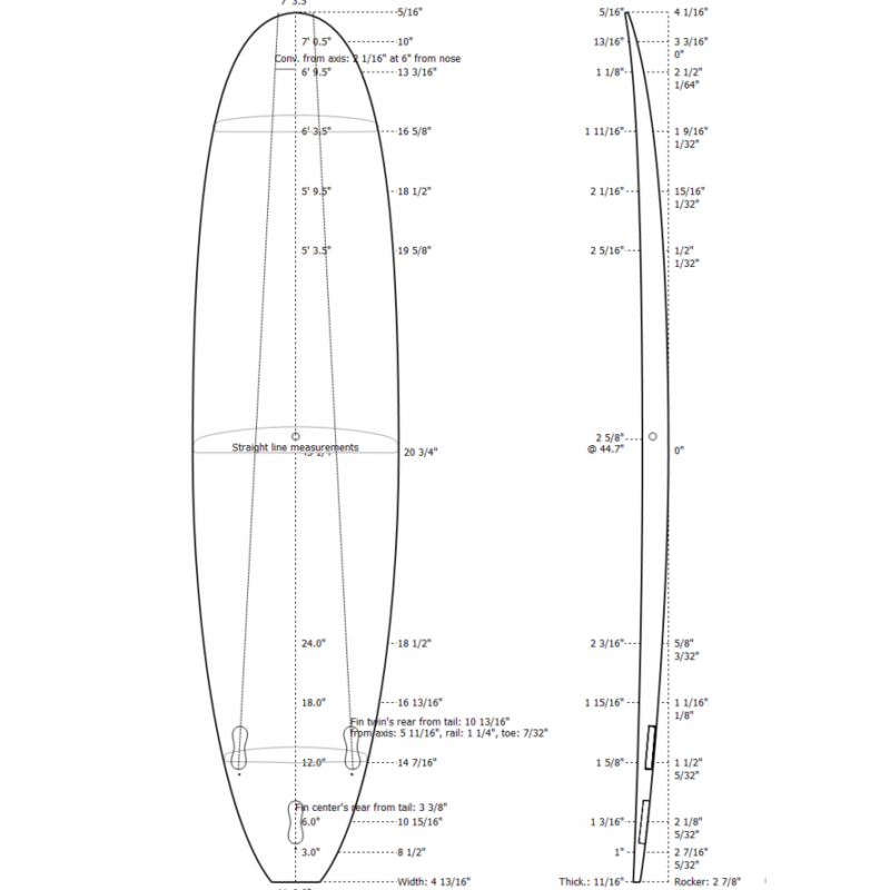 7'2 x 20 1/2" x 2 5/8" => 41,74L