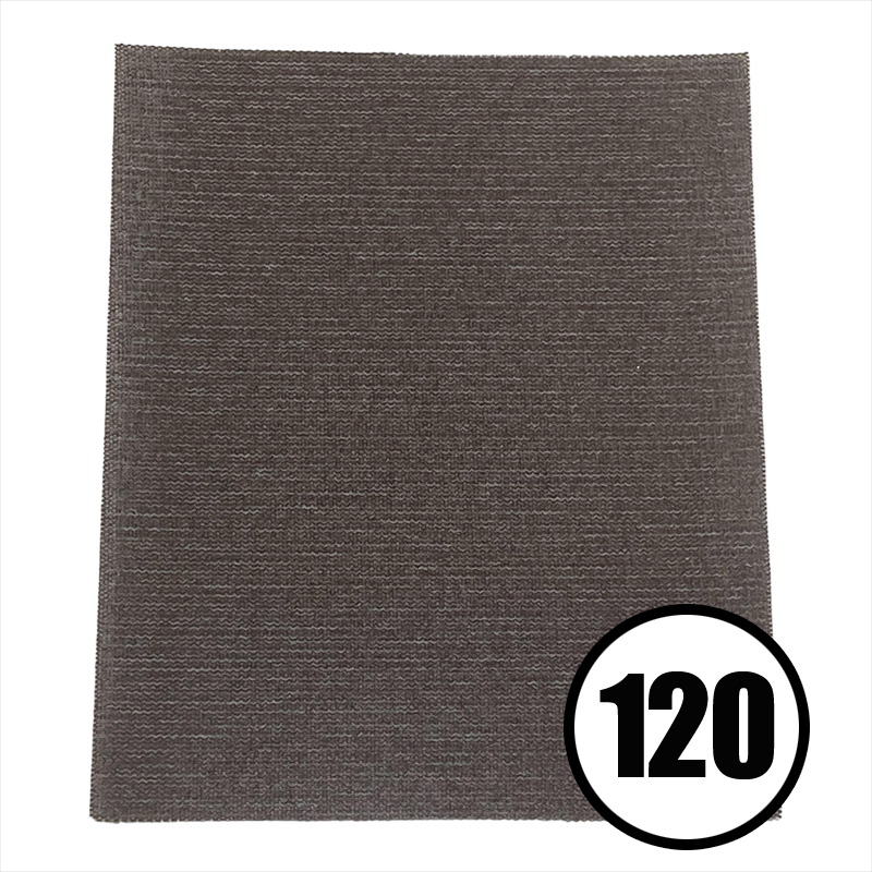 Sandscrren se utiliza para el acabado de rieles ya que su trama le permite tomar una forma redondeada para adaptarse a los contornos pero su parte trasera pegada con velcro también permite su uso sobre un Foampad para dar su acabado a la forma completa.