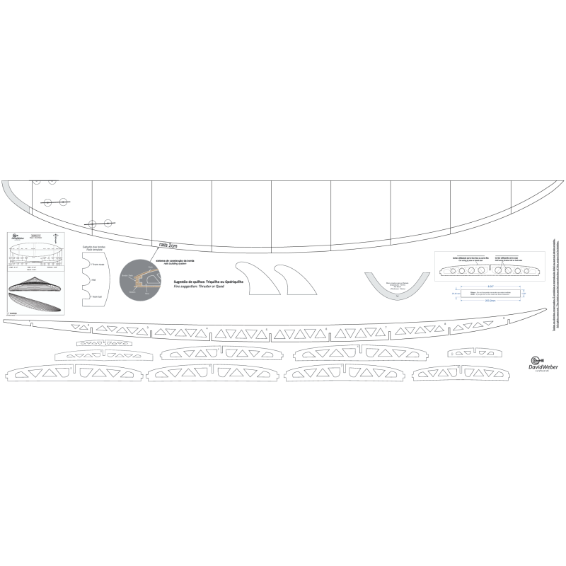 - El esqueleto de la tabla, cortado con láser a partir de Surfply3L (contrachapado 100% Paulownia)