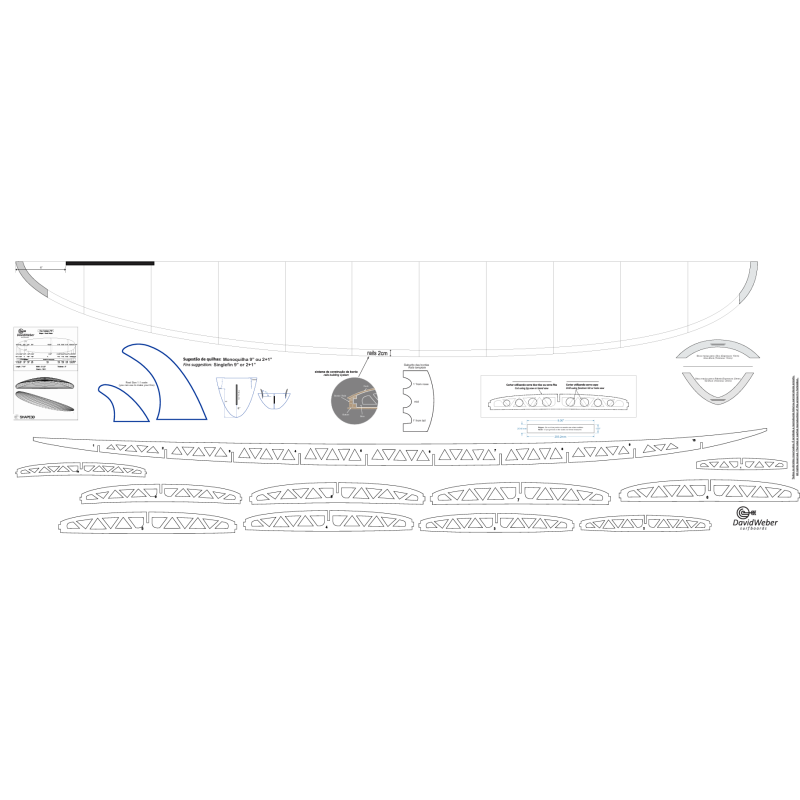 - El esqueleto de la tabla, cortado con láser a partir de Surfply3L (contrachapado 100% Paulownia)