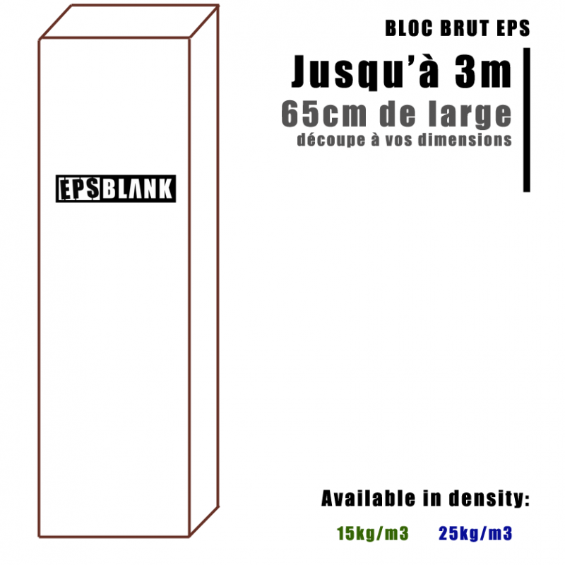 Bloque de espuma EPS crudo de 65 cm de ancho
