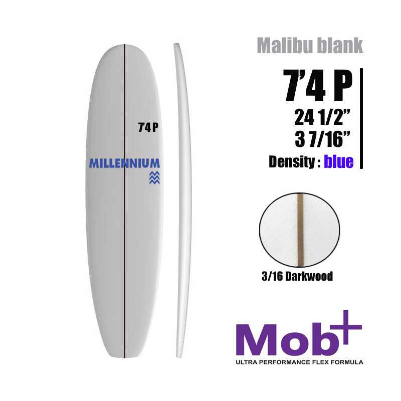 Tabla de surf 7'4 P Mid lenght MILLENNIUM 3/16 darkwood Densidad: AZUL estándar
