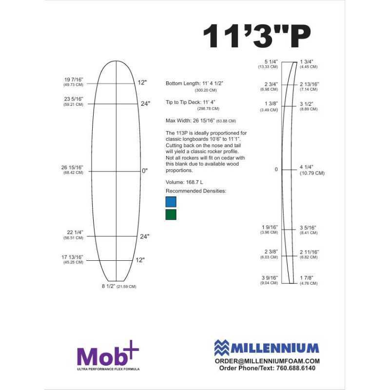 Tabla de surf 11'3 P Longboard MILLENNIUM 3/8 bass Densidad: AZUL estándar