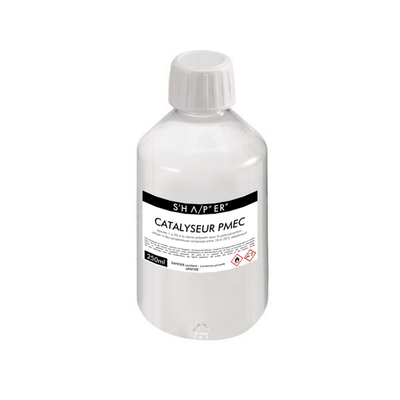 Le catalyseur PMEK se mélange à la résine polyester à hauteur de 1,5 à 2% pour amorcer la réaction de polymérisation (durcissement de la résine).