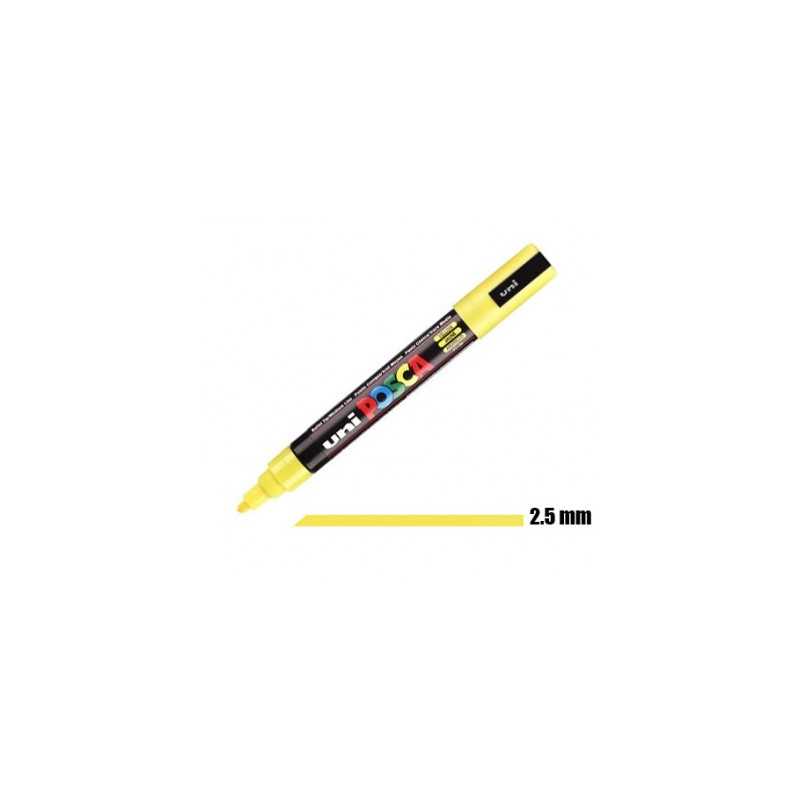 Marcador de pintura a base de agua POSCA para todo tipo de superficies. PC5M - Punta cónica fina de 2,5 mm. Los marcadores POSCA se pueden usar directamente sobre el cartón pluma o una vez barnizado con aerosol. Son inodoros, sin alcohol ni disolventes, y la punta es lavable con agua o reemplazable. Consulte las instrucciones y preguntas frecuentes de Posca.