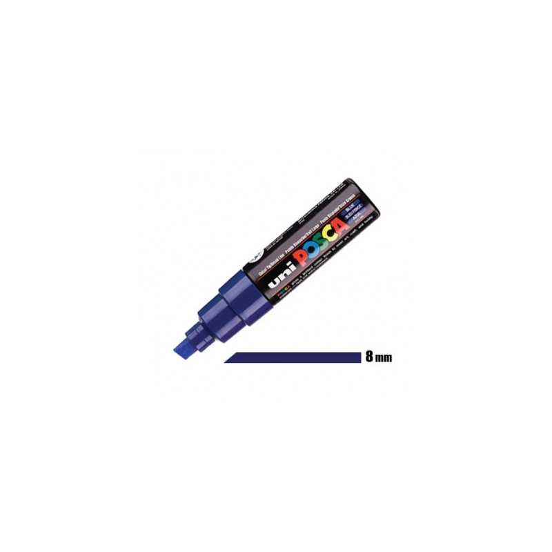 Marcador de pintura POSCA a base de agua para todo tipo de superficies. PC8K - Punta biselada de 8 mm. Los marcadores POSCA se pueden usar directamente sobre el cartón pluma o una vez barnizado con aerosol. Son inodoros, sin alcohol ni disolventes, y la punta es lavable con agua o reemplazable. Consulte las instrucciones y preguntas frecuentes de Posca.