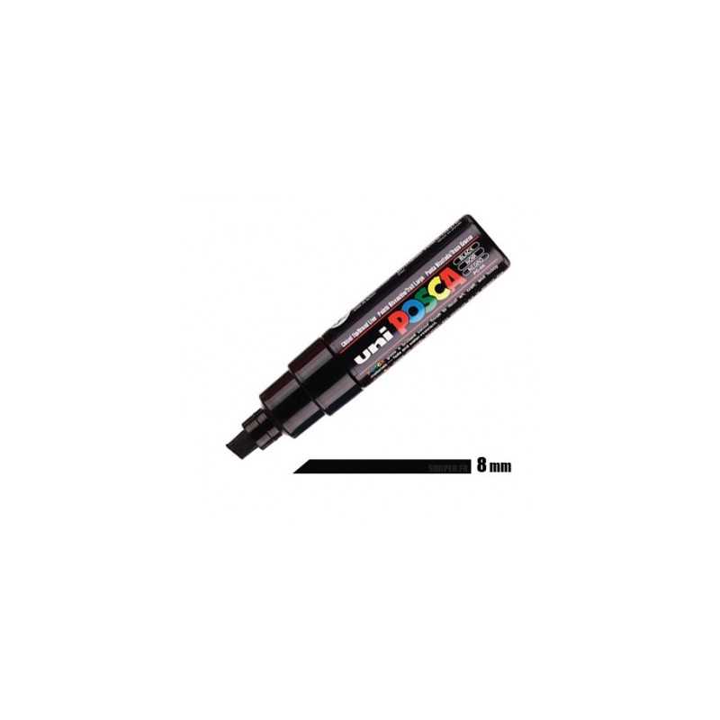 Marcador de pintura POSCA a base de agua para todo tipo de superficies. PC8K - Punta biselada de 8 mm. Los marcadores POSCA se pueden usar directamente sobre el cartón pluma o una vez barnizado con aerosol. Son inodoros, sin alcohol ni disolventes, y la punta es lavable con agua o reemplazable. Consulte las instrucciones y preguntas frecuentes de Posca.