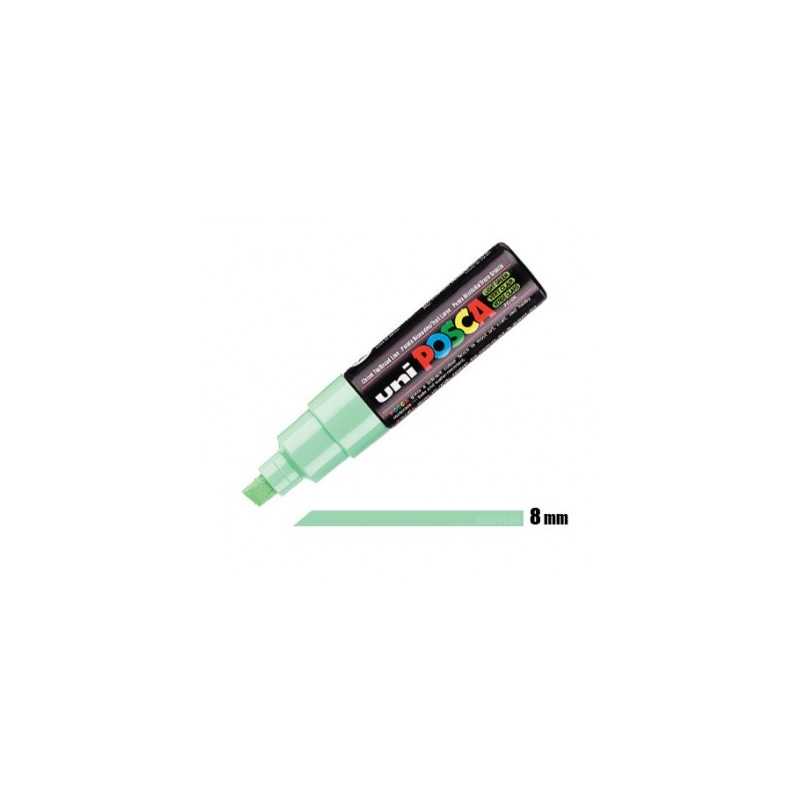 Marcador de pintura POSCA a base de agua para todo tipo de superficies. PC8K - Punta biselada de 8 mm. Los marcadores POSCA se pueden usar directamente sobre el cartón pluma o una vez barnizado con aerosol. Son inodoros, sin alcohol ni disolventes, y la punta es lavable con agua o reemplazable. Consulte las instrucciones y preguntas frecuentes de Posca.