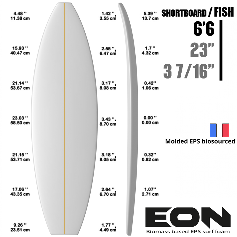 Pain de mousse EON Foam 6'6"SB moulés en France (Bretagne), lattage 3mm Plywood