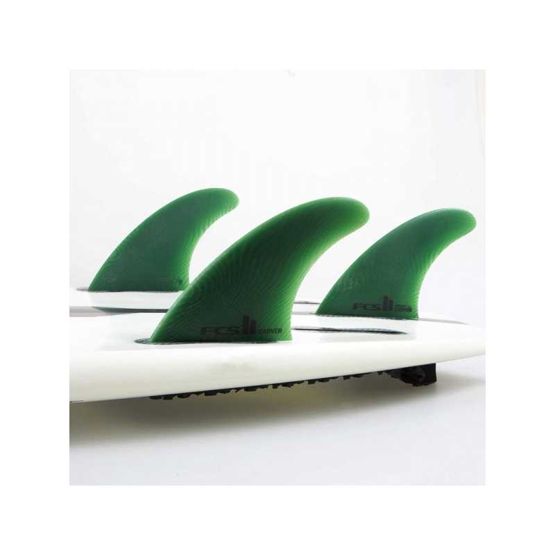El modelo de aleta de surf FCS Carver Neo Glass Tri Fins ofrece giros potentes y alargados y destaca en olas con paredes.